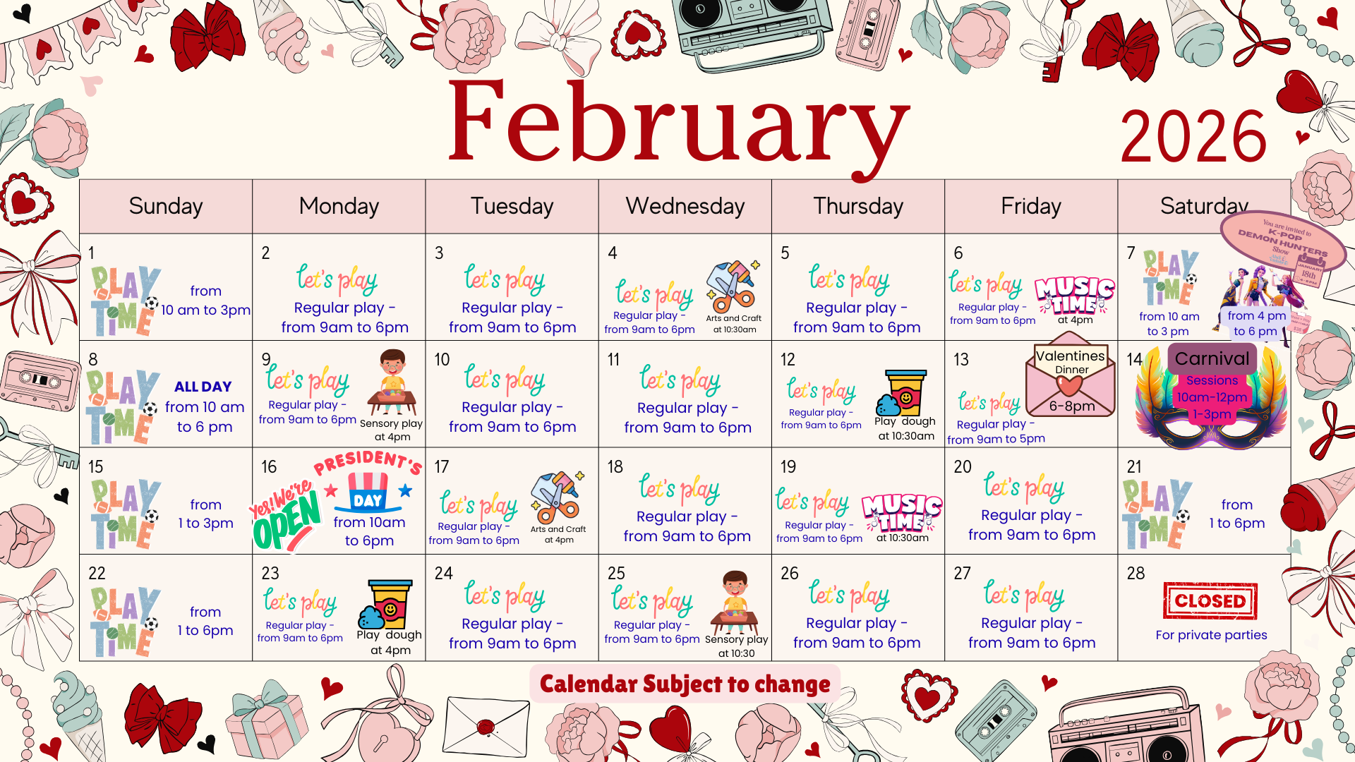 We believe in creating joyful experiences for the whole family. Our space is clean, safe, and full of wonder, perfect for exploration, connection, and community.